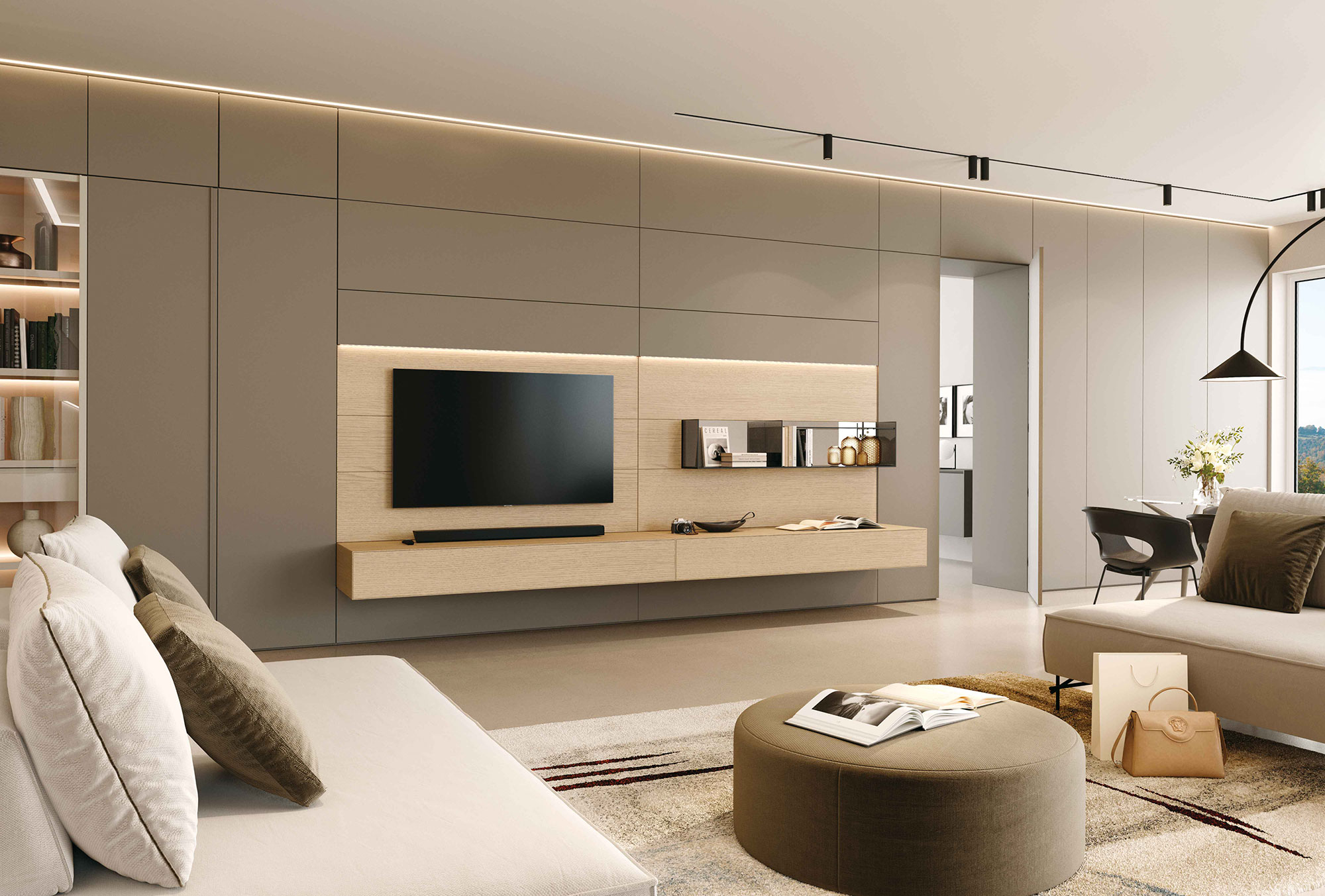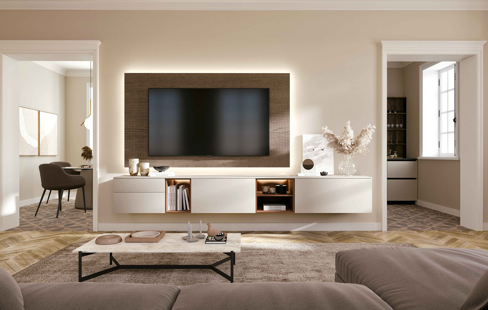 Il mobile TV è spesso uno dei punti focali del soggiorno, per questo motivo sempre più persone scelgono la parete attrezzata. Composta da moduli chiusi, elementi a giorno e ripiani, questa soluzione è altamente personalizzabile grazie alle infinite combinazioni possibili e si adatta facilmente alle dimensioni della stanza unendo estetica e funzionalità. In ambienti piccoli, invece, è preferibile optare per mobili sospesi dal design essenziale che alleggeriscono visivamente lo spazio.